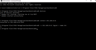 - Once the device is connected, use the following command to start creating a log file: