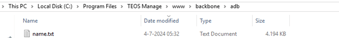 Please note that ADB is already integrated into the TEOS On-Premise version. Therefore, this step is not required when using TEOS On-Premise. The adb.exe file is located within the TEOS installation folder: C:\Program Files\TEOS Manage\www\backbone\adb - Extract the downloaded file to a folder. By default, this will be: