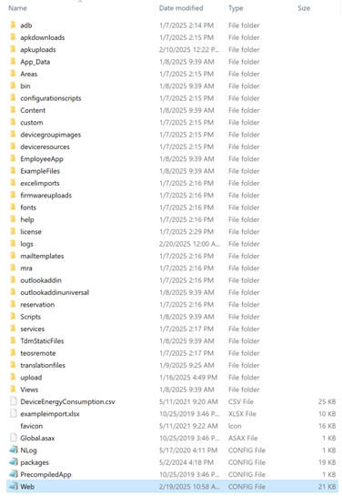 - In this folder, locate the file called “Web.config”. First, make a backup of this file.