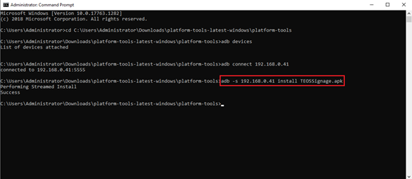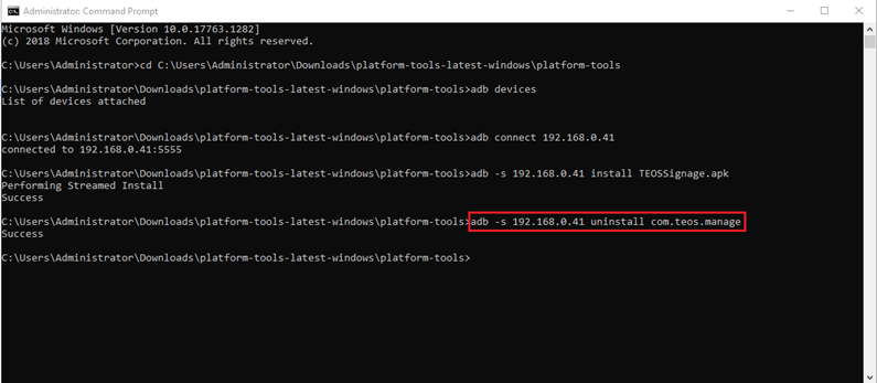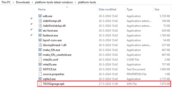 Please note that ADB is already integrated in the TEOS On-Premise version. Therefore, this step is not required when using TEOS On-Premise. The adb.exe file is located within the TEOS installation folder at: