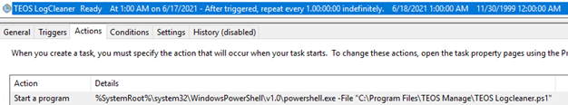 - The installer will create TEOS LogCleaner in Program Files, along with its tasks to run and logs to record what it cleaned. After this, the installer will create a scheduled task that executes the cleaner daily at 01:00 AM.