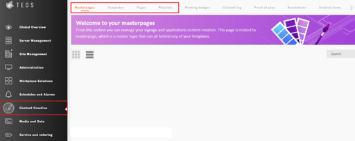 2. Go to “Content Creation” and select the tab (Templates, Pages, Playlists, etc.) depending on the rights you want to set.