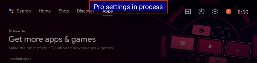 (A blue bar at the top stating ‘Pro-Settings in progress’ confirms this mode).