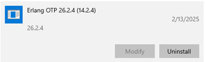 - The old Erlang version now needs to be uninstalled. Open “Apps and Features” and uninstall Erlang.