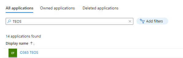 - In the search bar, search for the application created for TEOS usage. Open the application by left-clicking the name.