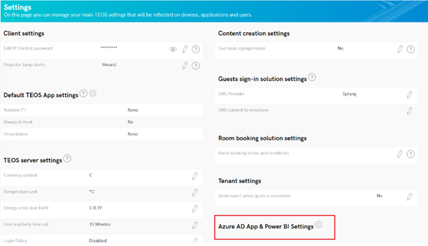- Select the option ‘Azure AD App & Power BI Settings’.