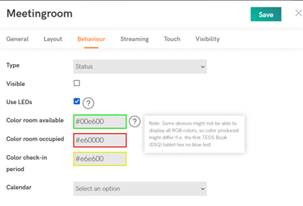 Determines whether the status is visible on the Room Booking page. - Use LEDs