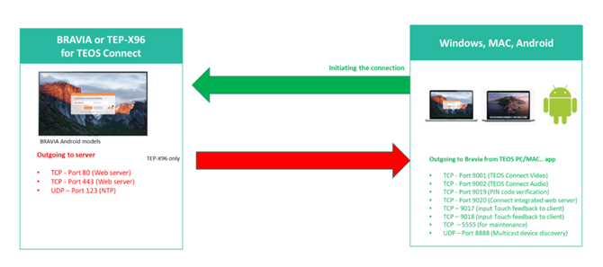 Please check the network architecture and verify the ports to open between TEOS Connect Receiver and TEOS Connect Client (from Android, macOS and Windows).