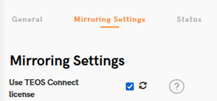 Select “Mirroring Settings” and select “Use TEOS Connect license”.