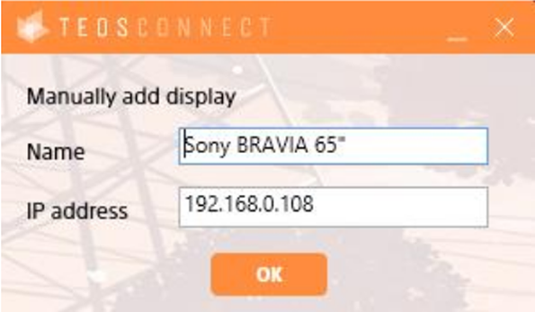 If a display is already in your TEOS, it can show as just an IP address, but it can also show with a name given to the display’s TEOS Connect by the administrator or configuration manager. If an administrator or configuration manager has set a name and activated the welcome screen, it will show this name on the welcome screen.