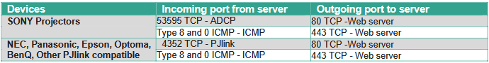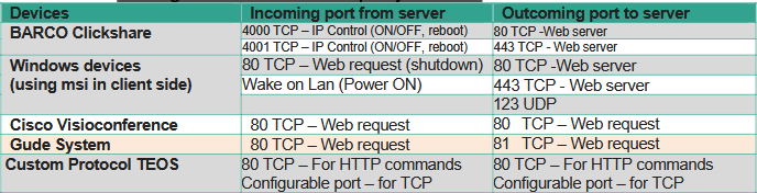 Manage for TEOS follows the network protocols of the integrated third-party devices, which use specific ports.