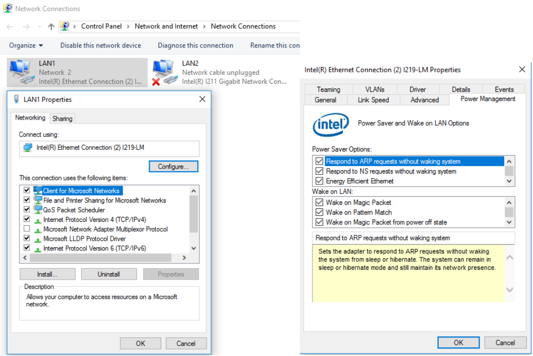 To power ON, the method used is Wake-on-LAN. Go to your network card configuration and enable “Magic Packet” and “Wake-on-LAN”.