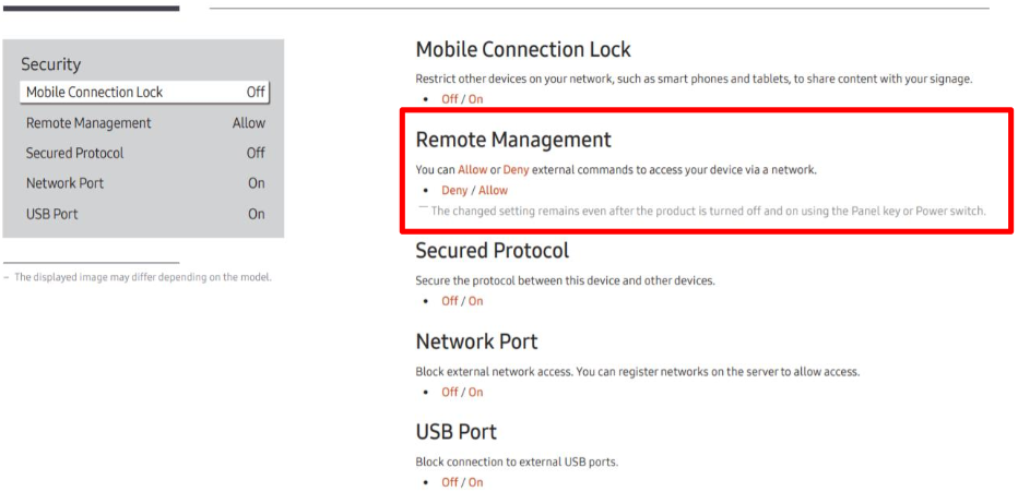 This option simplifies workflows when using a third-party device with digital signage. Linking the third-party device and Player ensures synchronized scheduling rules for both devices during power ON/OFF or content scheduling.